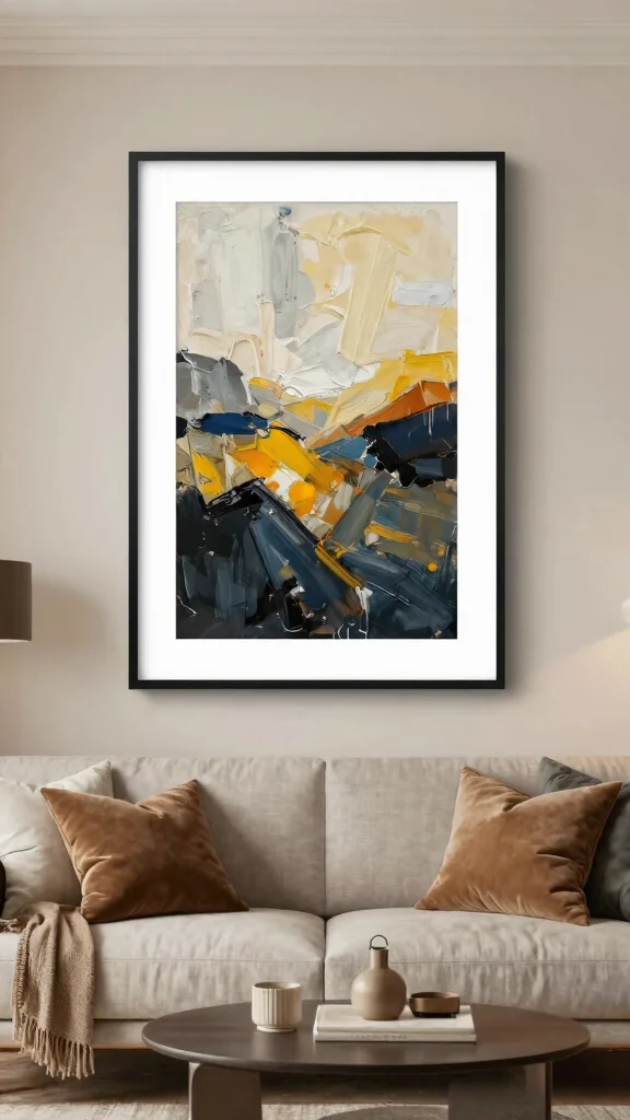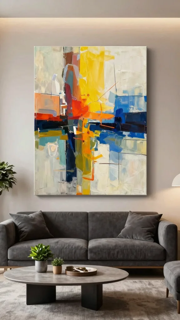 Start with your space and mood. Measure wall areas, note natural light, and pick pieces that echo your living room decor style. If your space is minimalist, a single large geometric print in a bold color can be a strong focal point; if it’s cozier, a trio of smaller abstracts adds texture without crowding. Consider color relationships: pull two colors from your palette to unify the look or use contrasting hues for drama. Look for abstract art ideas that resonate with you and think about framing. Rotate prints over time with a slim ledge so you can refresh your contemporary wall art without committing to new pieces.
