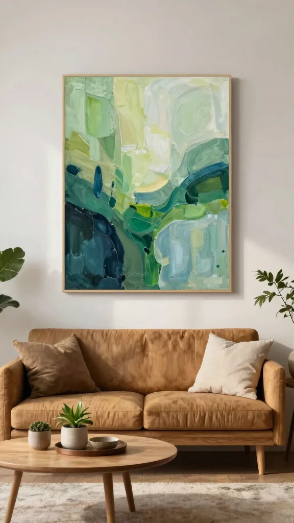 Choose nature-inspired abstract art to bring a calming and organic feel that connects your living room with the outdoors.