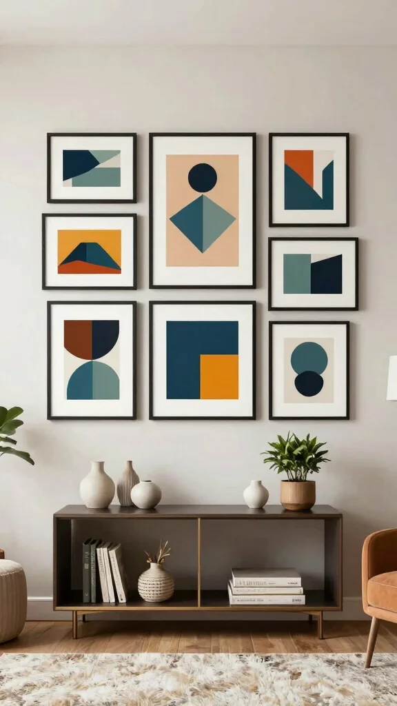 Elevate your walls with a collection of framed geometric prints. Arranging these prints in a gallery style can bring energy and sophistication to your living space. Opt for a mix of vibrant colors and shapes that reflect your personality while still harmonizing with your decor.