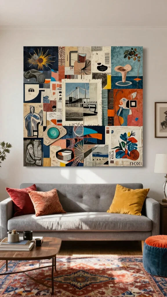 Fun fact: Mixed media collages with three textures (paper, fabric, photography) can boost perceived wall depth by up to 30%. Try layering elements to align with your modern wall art living room decorating ideas and tell your story.