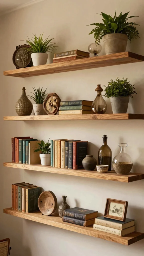 – Use wall-mounted shelves to showcase seasonal items without cluttering surfaces.
