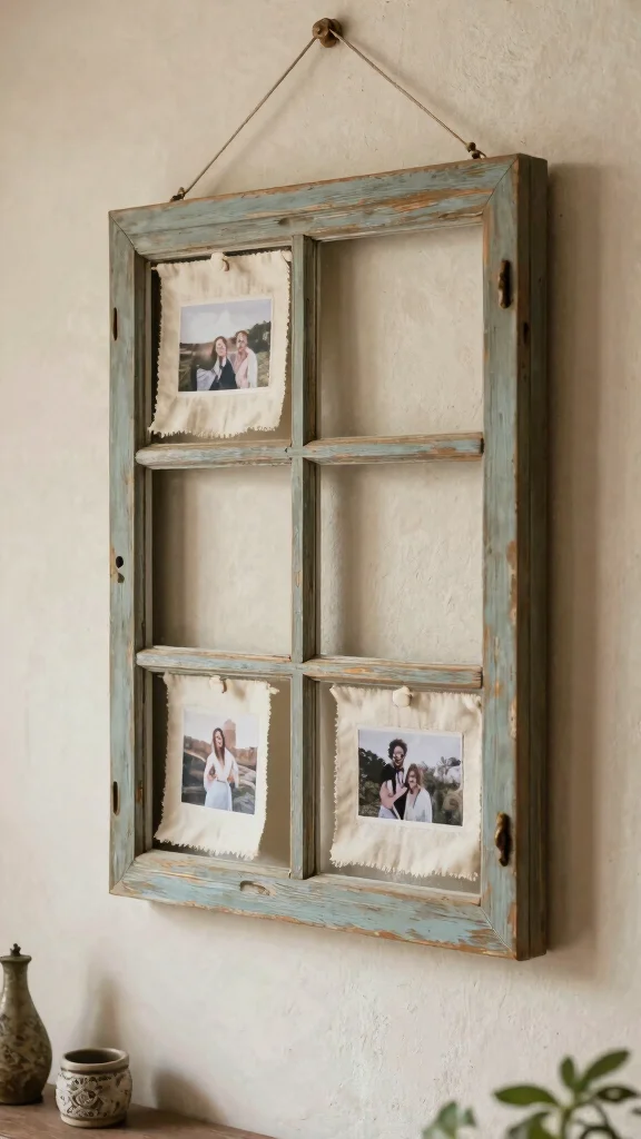 Transform old window frames into unique wall art displays, adding depth and character to your decor.