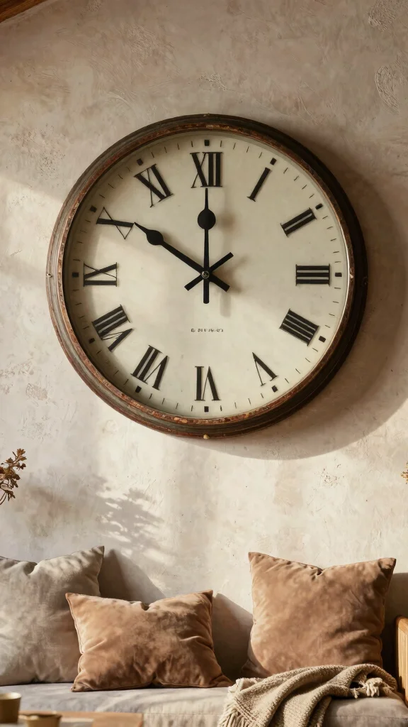 An oversized clock can serve as both a functional piece and a captivating focal point in your living room. Choose a vintage or distressed clock that embodies farmhouse charm. These clocks not only add character but also create a sense of visual balance, especially in smaller spaces.
