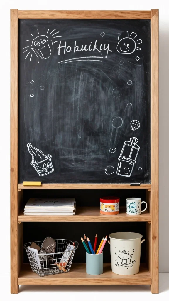 Bring a playful twist to your decor with an interactive chalkboard cabinet that invites creativity.
