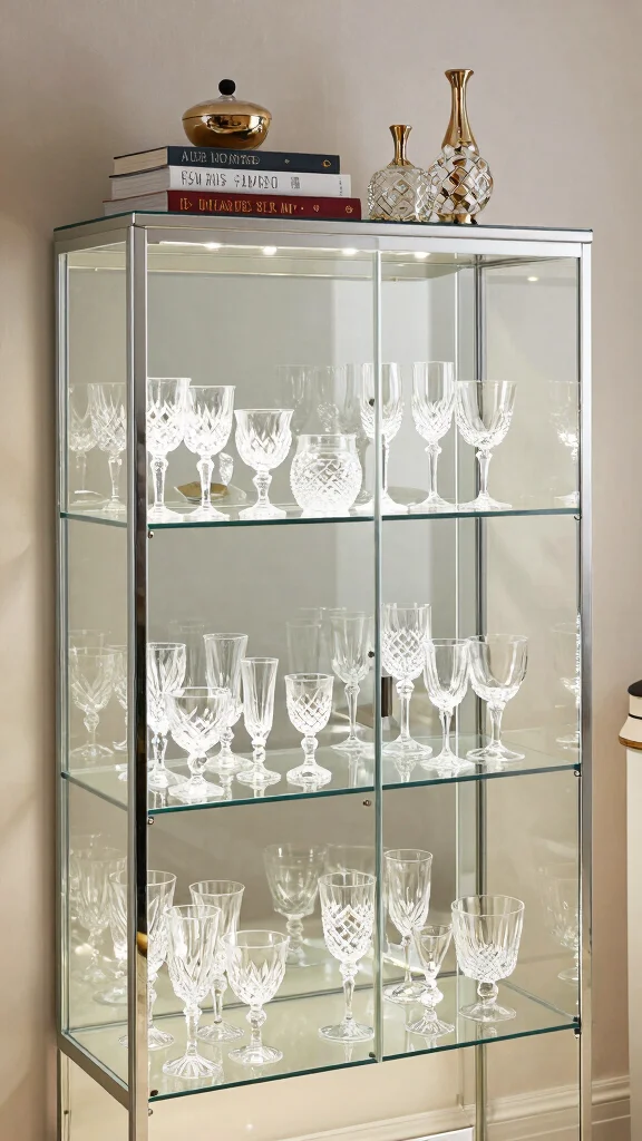 Fun Fact: Adding a mirrored back to a glass display cabinet can boost perceived depth by up to 30%, making prized crystal glassware look brighter. Pair that with gentle LED lighting and adjustable shelves for a showroom-ready accessories cabinet at home.