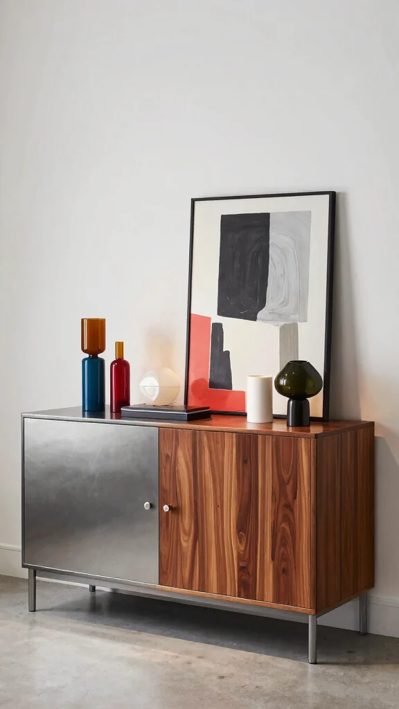 Fun fact: A bold contemporary cabinet can elevate a room’s vibe by up to 20%, turning everyday storage into a curated focal point. Mix metal with wood, and your space instantly feels modern and intentional.