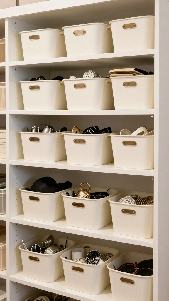 This method is perfect for anyone seeking a neat and organized space for accessories. You can easily switch to fabric bins for a softer look if desired.