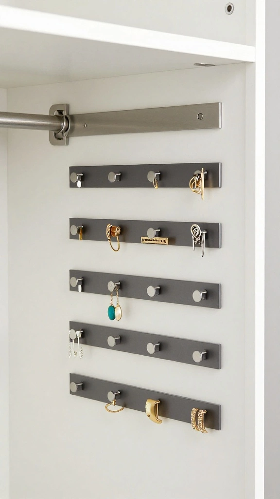 Install magnetic strips to keep metal accessories like earrings and hairpins organized and within easy reach.