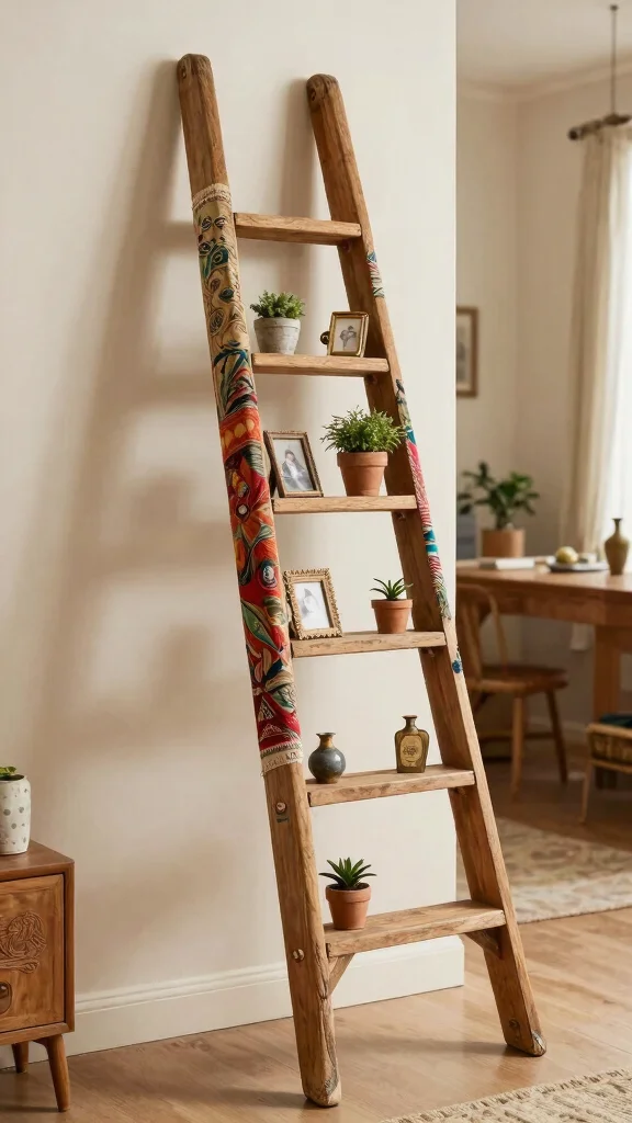 Incorporating a vintage ladder into your decor can add a whimsical touch while showcasing your favorite accessories. Lean it against a wall and drape vintage textiles over the rungs, or use them to hold decorative items like framed photos or small plants.