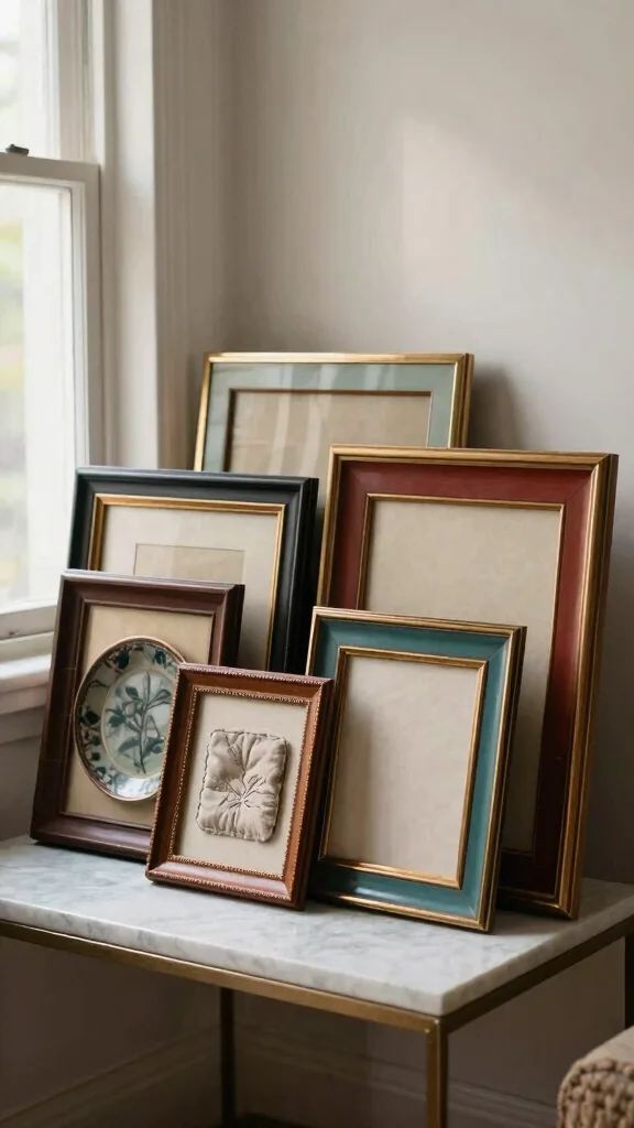 Transforming vintage frames into display pieces offers an elegant way to showcase your accessories while enhancing your decor. Hang frames on the wall to hold small decorative items like plates or fabric pieces.