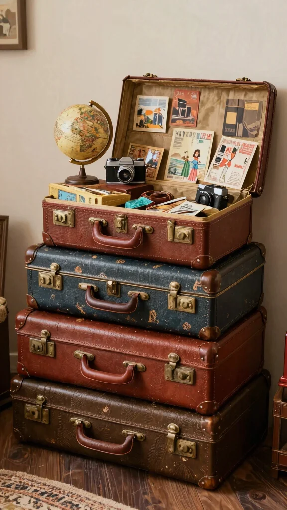Utilize old suitcases as display platforms for accessories, adding character and charm to your space.