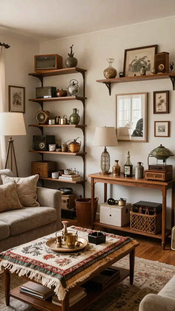 Open shelving not only highlights your vintage accessories but also enhances the overall ambiance of the room, making it feel inviting and personalized.