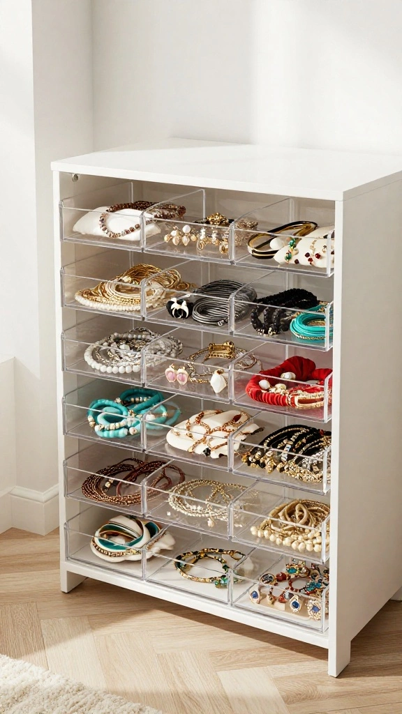 Use transparent dividers to easily view and access your accessories, enhancing organization and efficiency.