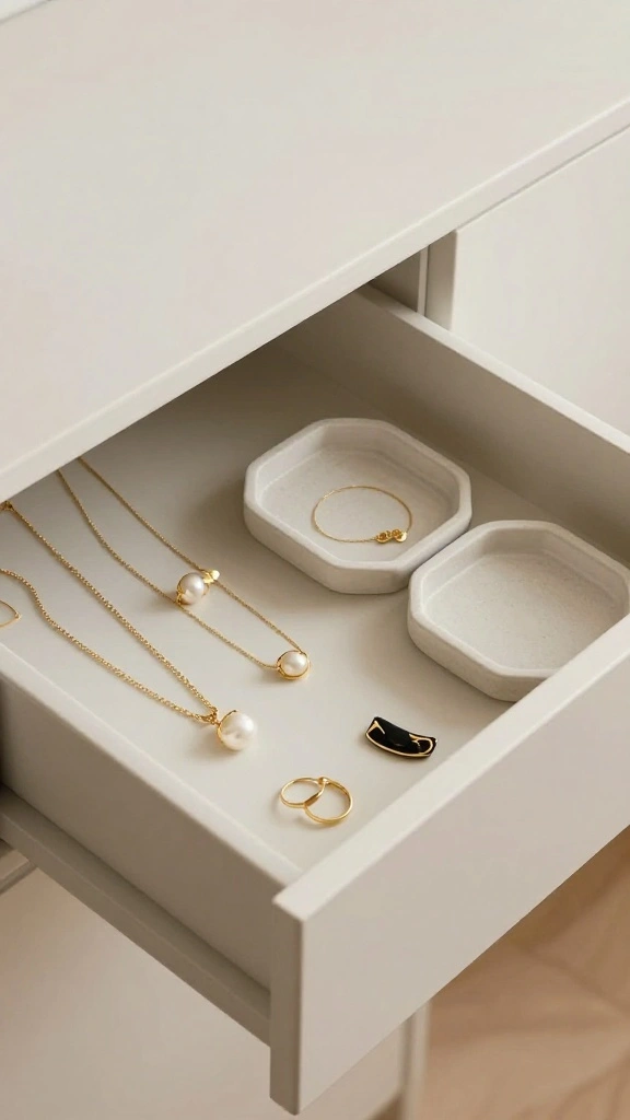 How can I organize my accessories drawer with minimalist storage solutions?