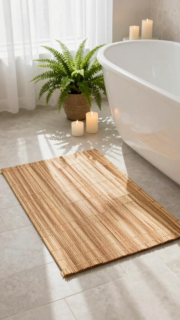 Fun fact: bamboo bath mats are naturally mold-resistant and dry quickly. Place yours near a vent to keep it pristine, upgrading your eco-friendly accessories for bathroom with stylish, water-smart essentials.