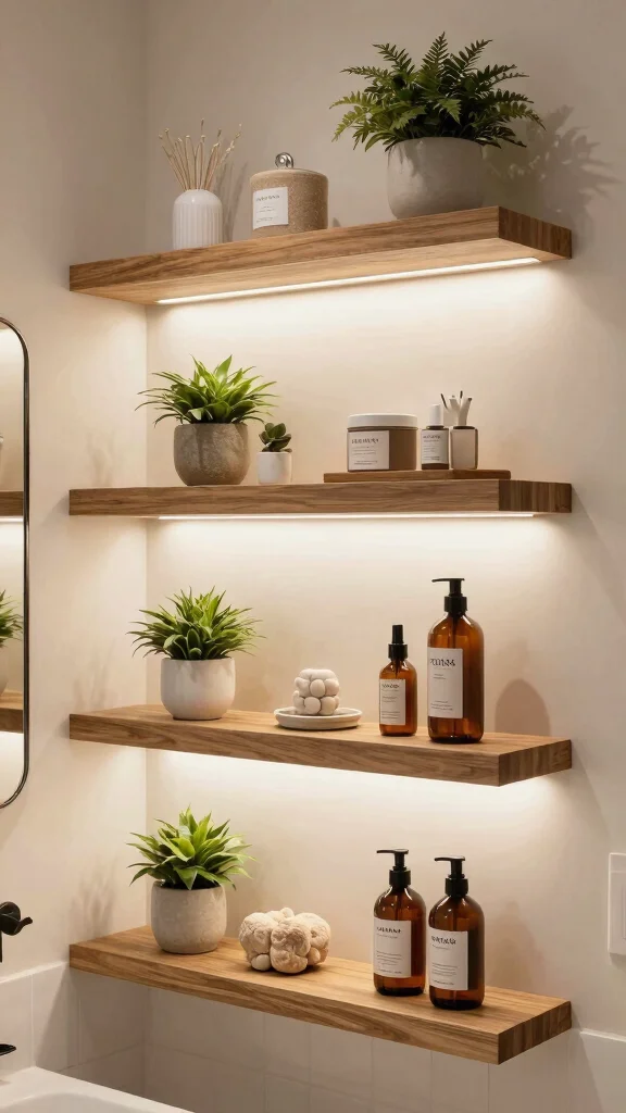 Install shelves at different heights to create visual interest and maximize your space. By decorating your shelves thoughtfully, you can make your bathroom feel more polished and inviting.