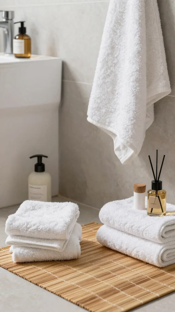 – Pair your mat with soft, neutral towels for a cohesive look.