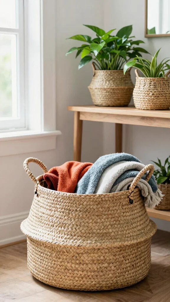 By adding woven baskets, you not only enhance your home’s style but also introduce texture and warmth, creating a comfortable and organized environment.