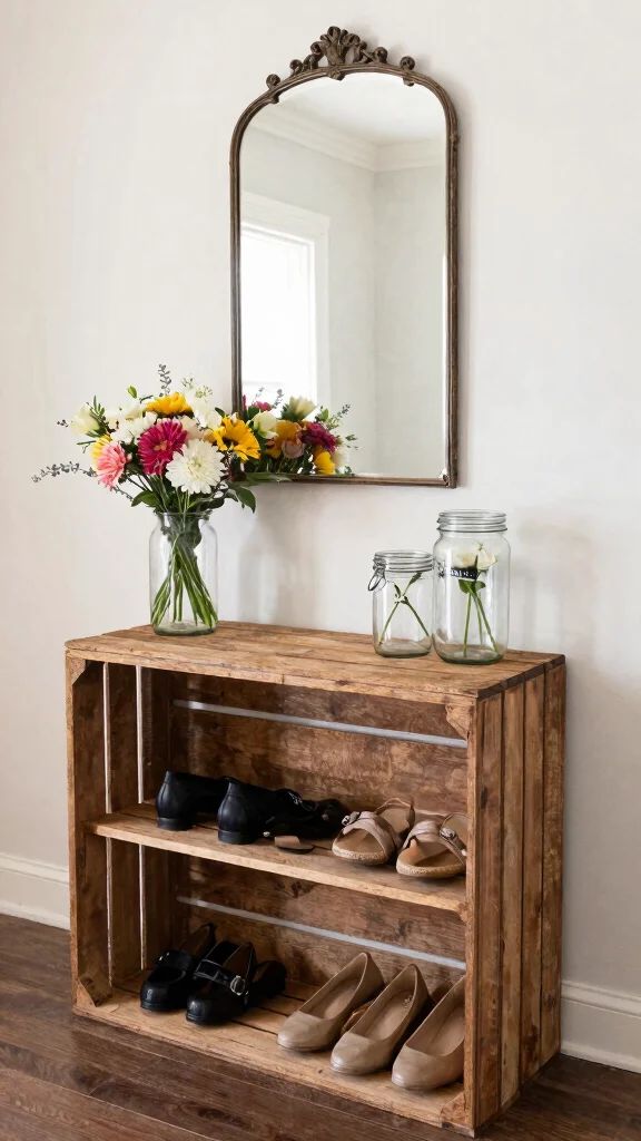 – Use vintage crates for stylish shelving