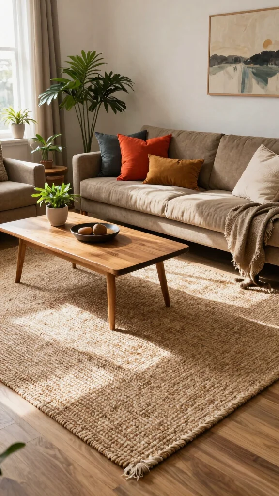 Natural fiber rugs are essential for adding warmth and texture to your home. Made from materials like jute or sisal, they bring a touch of nature indoors while providing comfort underfoot. Visualize a cozy living room with a soft jute rug grounding the space, enhancing the overall ambiance.