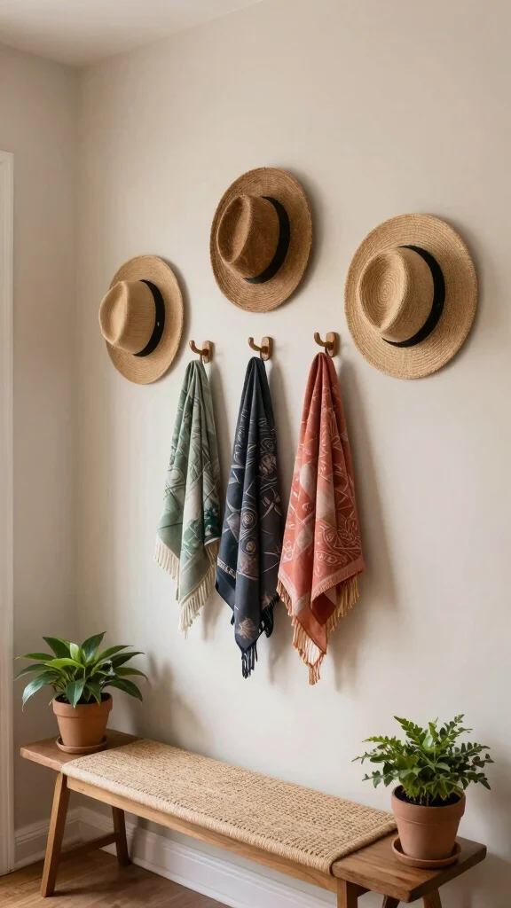 Installing wall hooks made from natural fibers offers an elegant way to keep your accessories organized while enhancing your space’s artistry. These hooks are perfect for hanging bags, scarves, or hats, providing both function and aesthetic appeal.