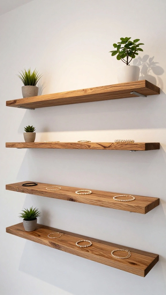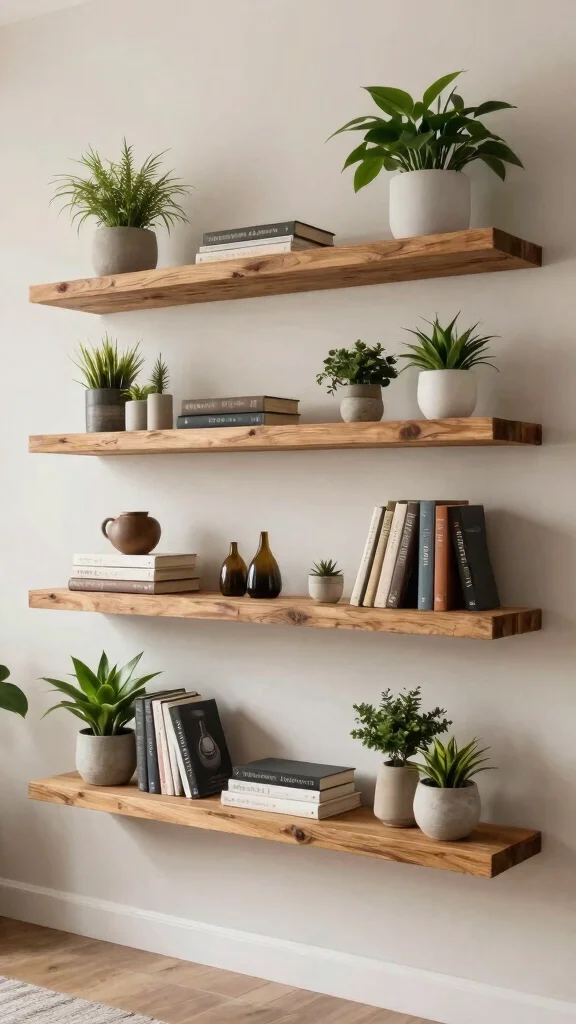 Floating shelves can transform underutilized walls into eye-catching focal points, integrating your accessories into the overall decor.