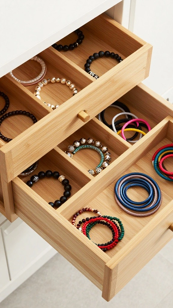Eco-friendly drawer dividers are a small change with big payoff. Keep accessories organization ideas simple by sorting by type or color, using bamboo or recycled materials, so your daily routine stays calm and clutter-free.