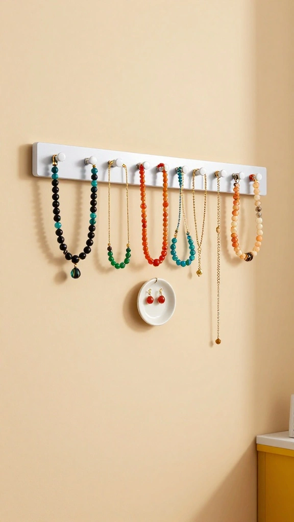 Select a magnetic strip that complements your decor, or paint it to match your room’s aesthetic. Arrange your jewelry on the strip in an artful manner for a stunning display. Adding a small dish below the strip can offer a convenient spot for earrings and other small items.