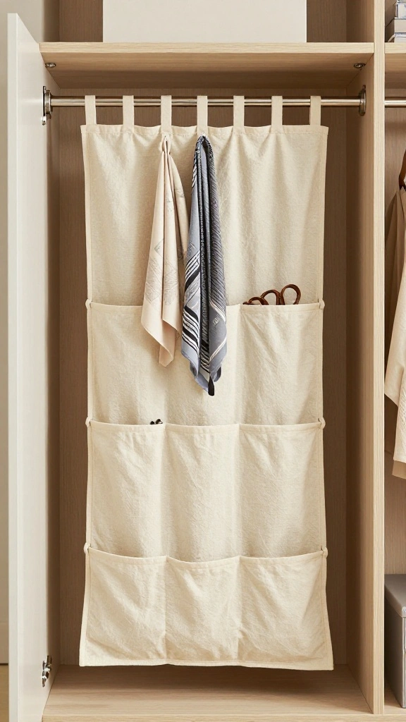 Select hanging organizers in neutral tones to seamlessly blend with your decor. Hanging them at eye level makes it easy to see and reach your accessories. Use them for various items like scarves, belts, or makeup to maximize their potential.