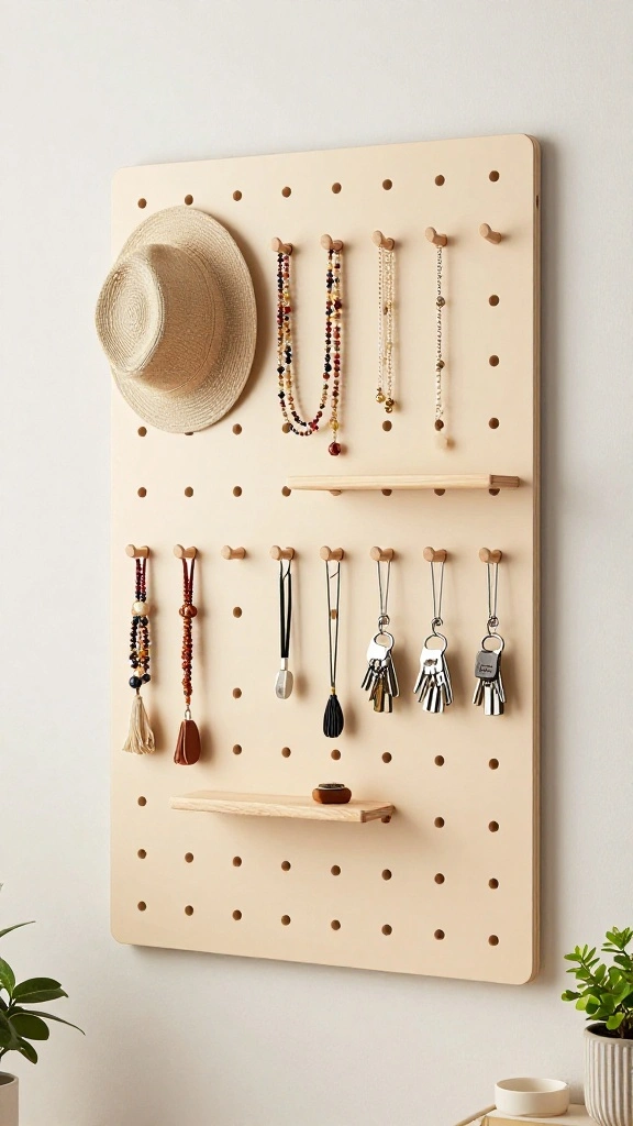 Pegboards are making a stylish comeback, serving as a versatile organization tool that can be customized to fit your needs. Perfect for displaying everything from key chains to jewelry, a pegboard can keep items organized while doubling as an attractive feature in your home.