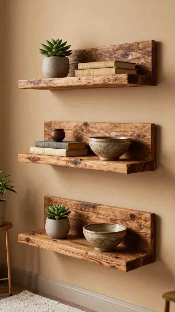 Opt for reclaimed wood shelves to add rustic charm while promoting sustainability in your decor.