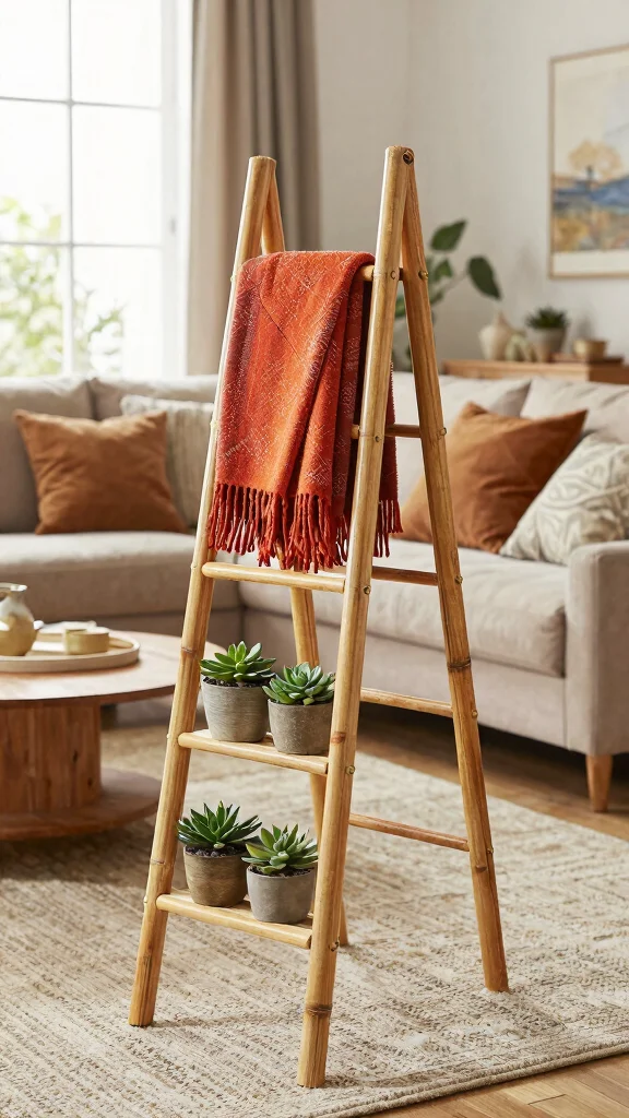 Bamboo ladders are an excellent choice for displaying accessories due to their lightweight yet sturdy construction. These decorative stands are perfect for vertical storage, ideal for hanging throws, magazines, or even plants. The natural aesthetic of bamboo brings an earthy vibe to your home, enhancing the overall design.
