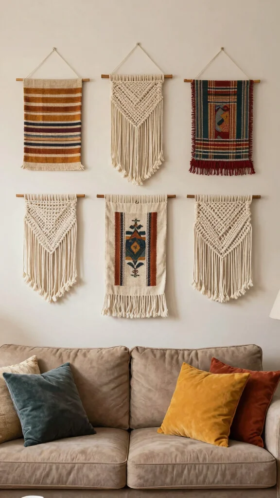 ❝ Fabric wall hangings instantly warm your space and give art wall living room ideas a tactile twist. Mix tapestries, macramé, and quilts at different heights to turn a wall into a soft, focal point—practical, affordable, and totally share-worthy.