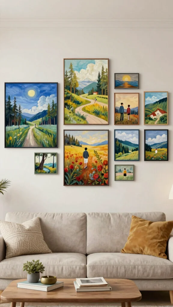 Consider how your art pieces can narrate a story when combined. Whether it’s a tale of travels, family history, or whimsical themes, a storytelling approach can make your living room feel cohesive and inviting.