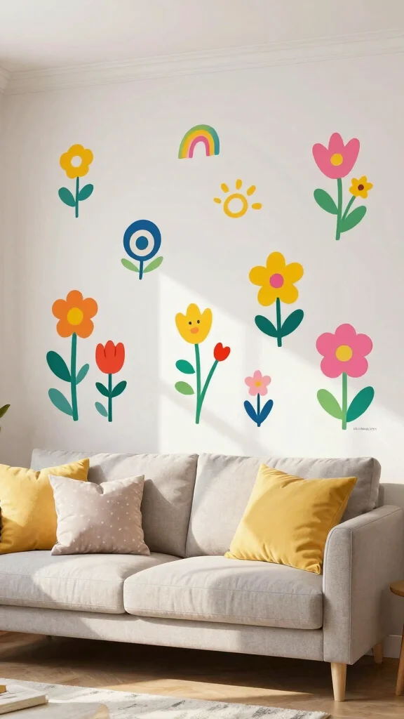 This playful approach not only brightens your living room but also encourages your children’s creativity and self-expression.