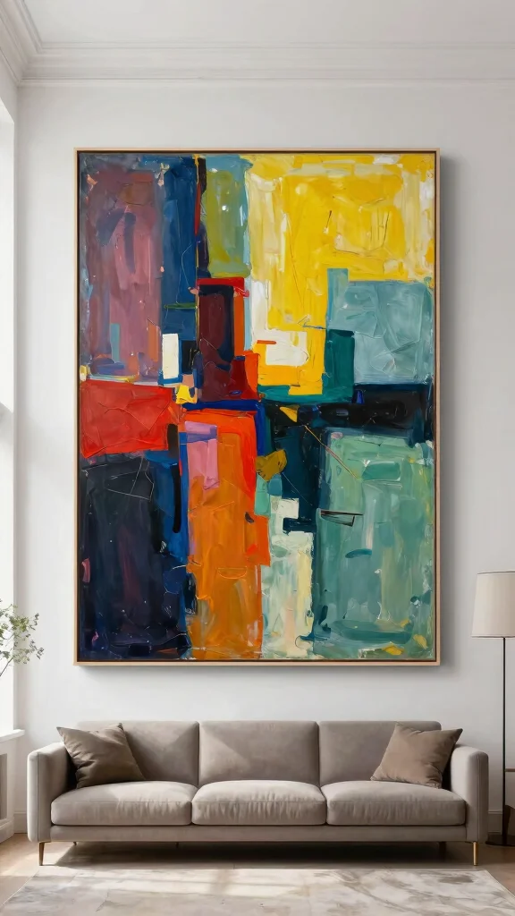 When selecting oversized art, keep these aspects in mind. Ensure the artwork’s size complements your wall and furniture arrangement to maintain balance. A well-placed piece, at eye level or slightly lower, can create a striking visual impact that elevates your decor.
