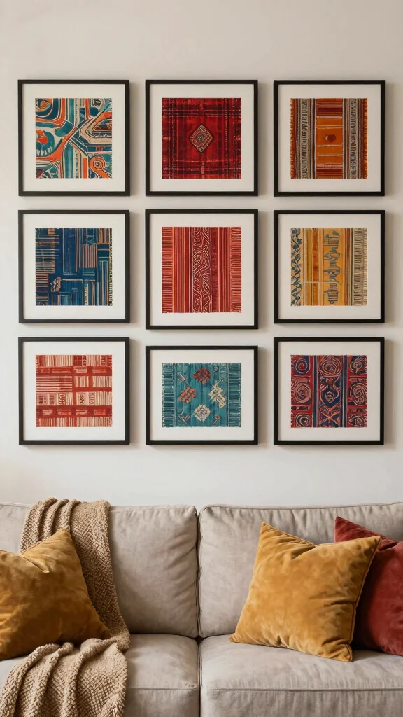 Elevate your decor by incorporating framed fabric art into your living room. Unique textiles, such as vintage fabrics or colorful tapestries, introduce warmth and texture to your walls. This creative choice not only showcases cultural heritage but also adds a vibrant touch to your space.