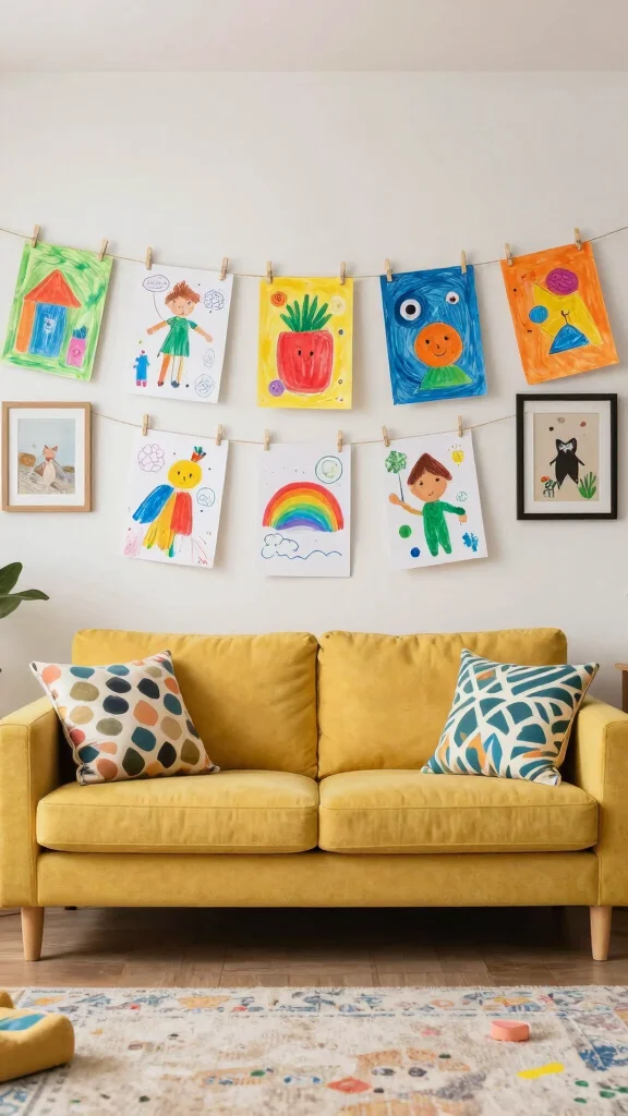 6. Whimsical Kids’ Artwork Display