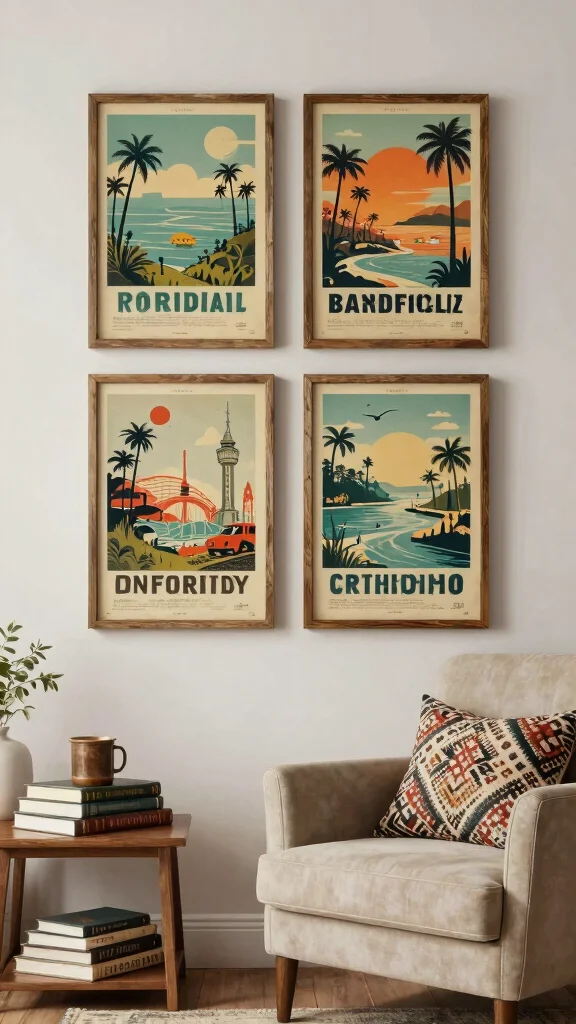 Vintage travel posters invite a sense of wanderlust into your home, making your living space feel lively and adventurous.