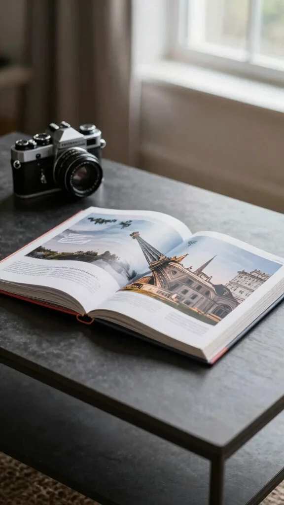 Display this book to not only appreciate the art but to spark conversations about the experiences captured within. Enhance the presentation with a small globe or travel-themed decor to create an inviting atmosphere.