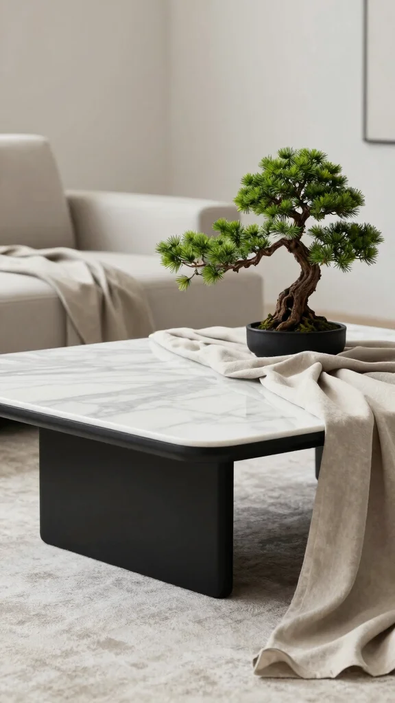 Add a single stylish coffee table book as a focal point, then place a small sculptural object or a plant nearby to introduce texture.