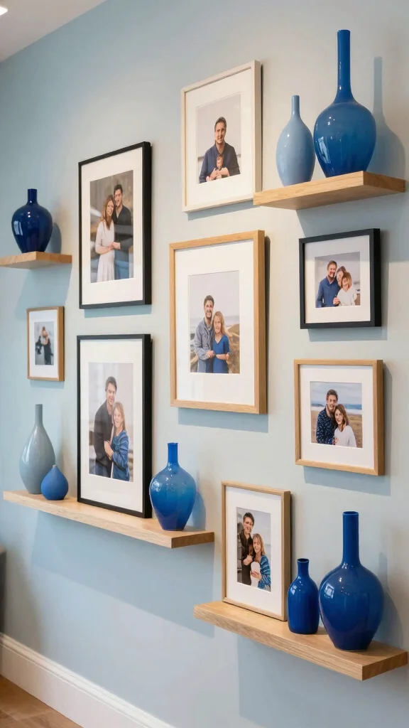 Incorporating blue vases into your gallery wall enhances visual appeal and adds depth and interest to your decor.