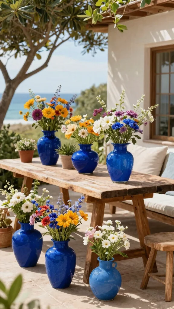 Extend your coastal decor outdoors by incorporating blue vases into your patio or garden. Opt for materials that withstand the elements, such as ceramic or resin, ensuring durability in outdoor settings. Fill these vases with seasonal flowers or herbs, creating a vibrant atmosphere that beautifully complements nature.
