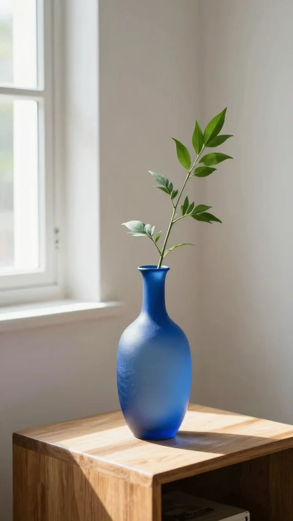 Embracing the simplicity of a single blue vase creates a serene atmosphere, allowing its beauty to shine through.