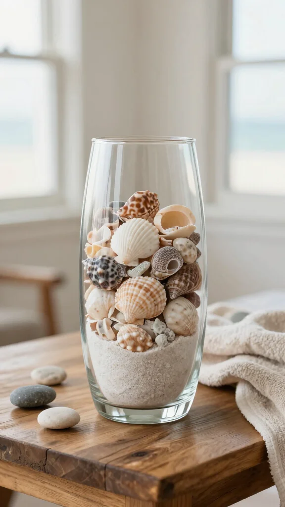 For a budget-friendly approach, consider collecting items during beach visits or using decorative fillers from local craft stores. Layering sand and shells in vases creates visual interest while celebrating the beauty of coastal living.