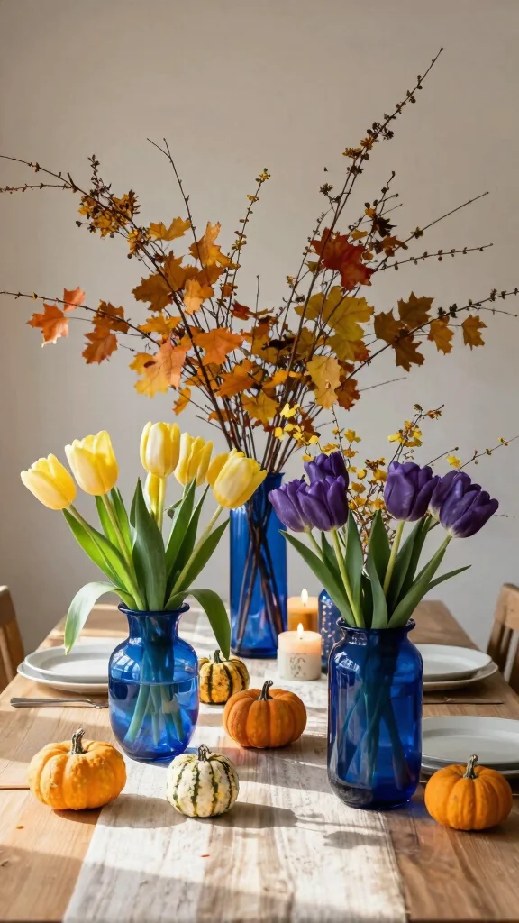 9. Use Blue Vases for Seasonal Decor