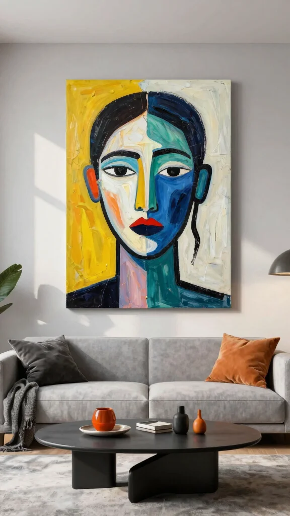 Abstract faces can add a touch of intrigue and modernity to your living room. This art style combines vivid colors and shapes to represent human features, making it both relatable and engaging. The balance of abstraction and recognizable elements can spark conversation and enrich your decor narrative.