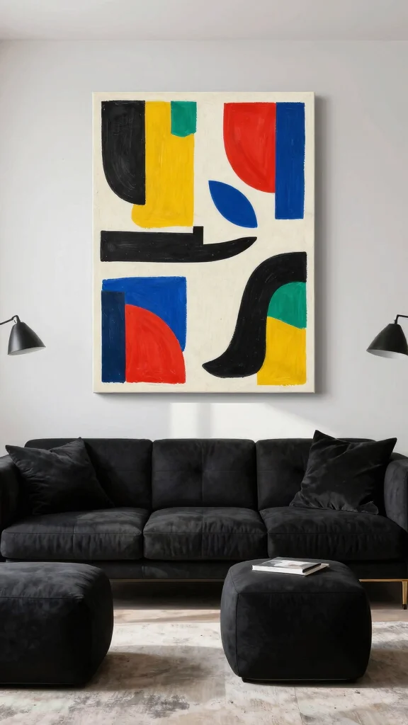 For a vibrant and energetic living room, bold color blocks can truly make a statement. This lively style uses large swaths of bright colors to create an eye-catching focal point, perfect for those looking to inject some fun into their decor. Think of pairing a striking red canvas with neutral furnishings to allow the art to shine without overwhelming the space.
