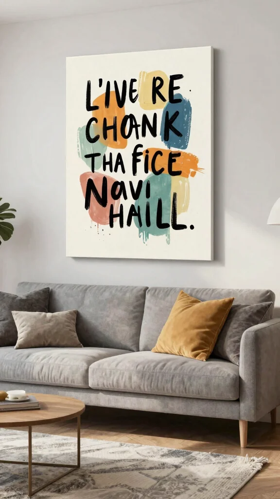 Integrating inspirational quotes with abstract art adds a personal touch to your living room. This style not only beautifies the space but also uplifts your mood and encourages positive thinking. Choose fonts and colors that harmonize with your decor, ensuring the quote resonates with your aspirations.