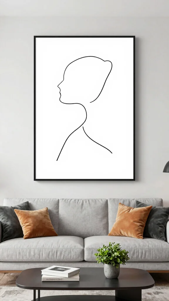 Minimalist line art offers a modern and chic touch to your living room decor. With simple, continuous lines, this style creates striking visuals that convey deep meaning while remaining visually light. Black ink on a white canvas can provide a stunning contrast that fits beautifully within contemporary spaces.